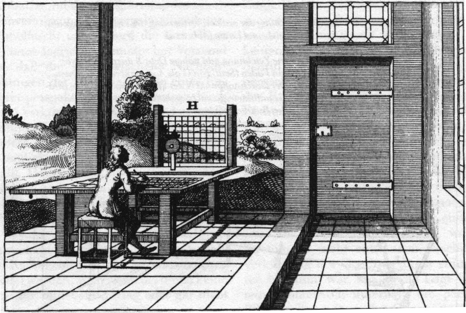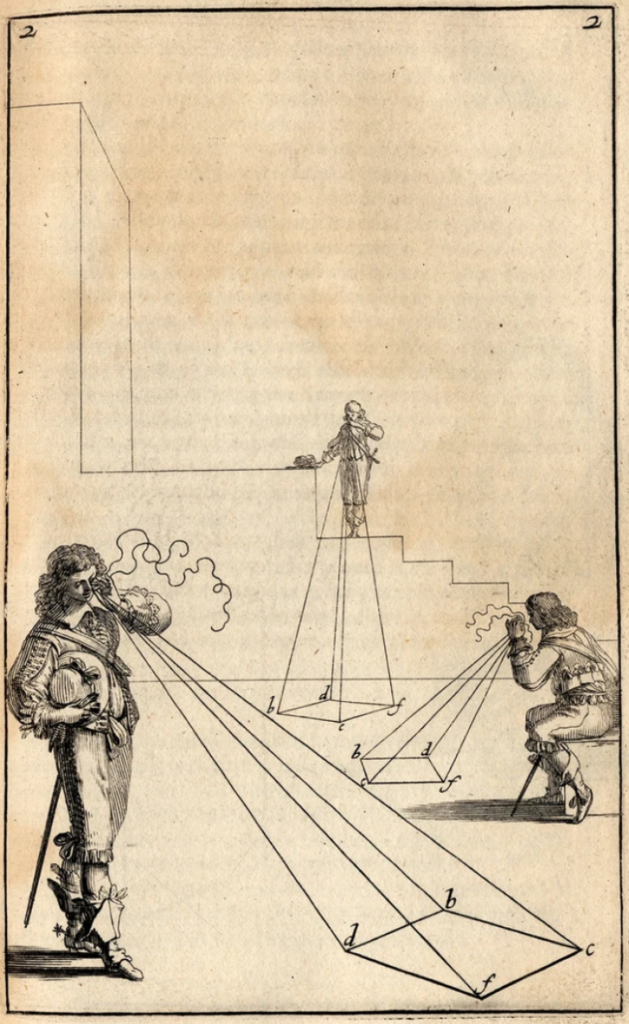 Das Bild macht also sichtbar: Perspektive ist keine „freie“ Zeichnung, sondern reine Geometrie – Auge, Punkt, Linie, Fläche sind durch strenge Regeln verbunden.