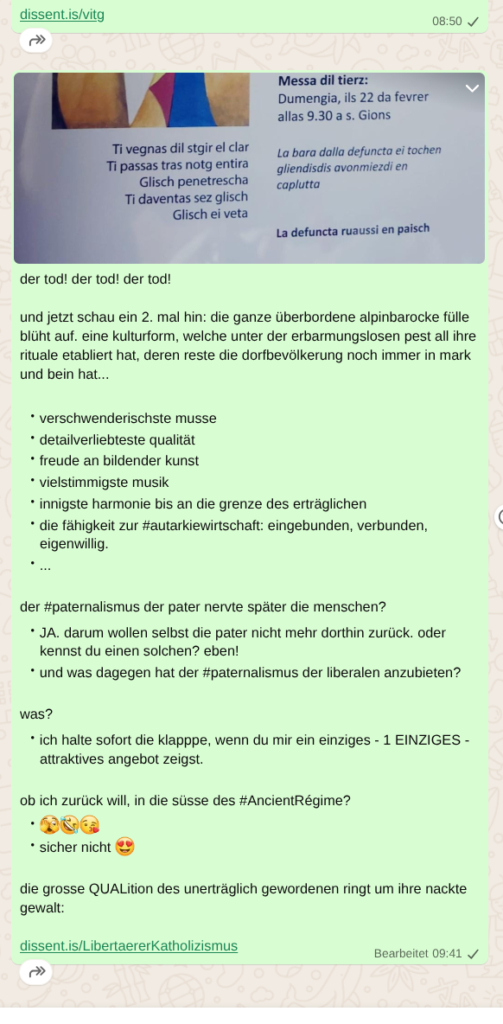 Dass “Die Liberalen” keine inbrünstige Freude mehr an “die Suche nach Wahrheit” habe, den heiligen Gral von “Ich weiss, dass ich nicht weiss” aus dem Fokus gefallen ist, die Selbstverständlichkeit, dass alles Wissen von Menschen, menschliches Wissen ist und darum Wissen geschaffen wird und darum die Wissenschaf(f)t als Institution und die Gemeinschaft der Gelehrten zu bewachen sei, wie es die Schweizer Garde mit ihrem Papst tut, das Ideal der Komplementarität von #FreeSpeech und #Agree2disagree — … himmelherrgott… alle Ideale futsch, weg, implodiert… Jetzt killen freie, gleiche, brüderliche Individuen andere freie, gleiche, brüderliche Individuen… der Worst Case von “Radikalem Liberalismus”, welche nur einen Feind kennt: den Staat! Dieser wird verHERRlicht durch den Feind des “Sozialismus”…
