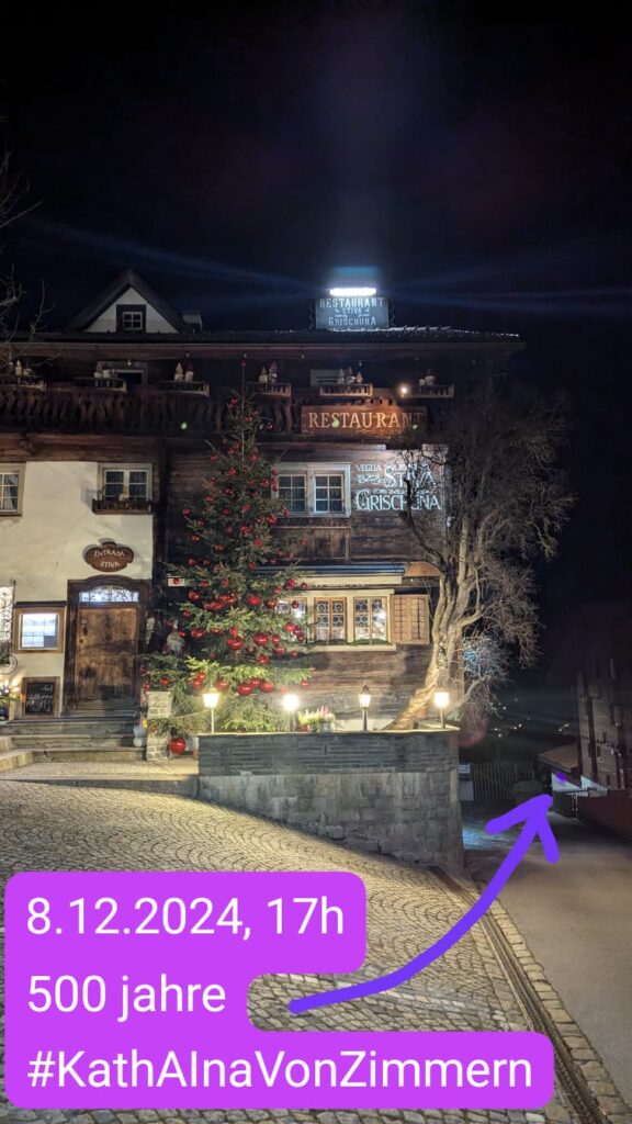 Zu meinem eigenen Eintrag: Der 8. Dezember fällt 2024 auf einen Sonntag. Es wird das 500-jährige Jubiläum sein, an welchem Katharina Von Zimmern ihre Macht in Zürich abgegeben hat. SAVE THE DATE. Mein “persönlicher” Bezug zu Katharina Von Zimmern: