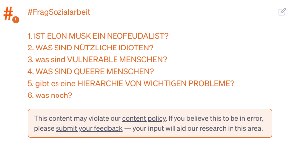 29. März 2023 | inzwischen habe ich den #FragSozialarbeit doch öfter gebraucht. Zum ersten Mal gesehen, habe ich eine ähnliche Konstruktion vermutlich @metamythos gesehen: #FragDenKurator #AskTheCurator… Egal: Bin am Wörter sammeln, welche den Gedanken #DefaultChange leicht erahnbar machen: