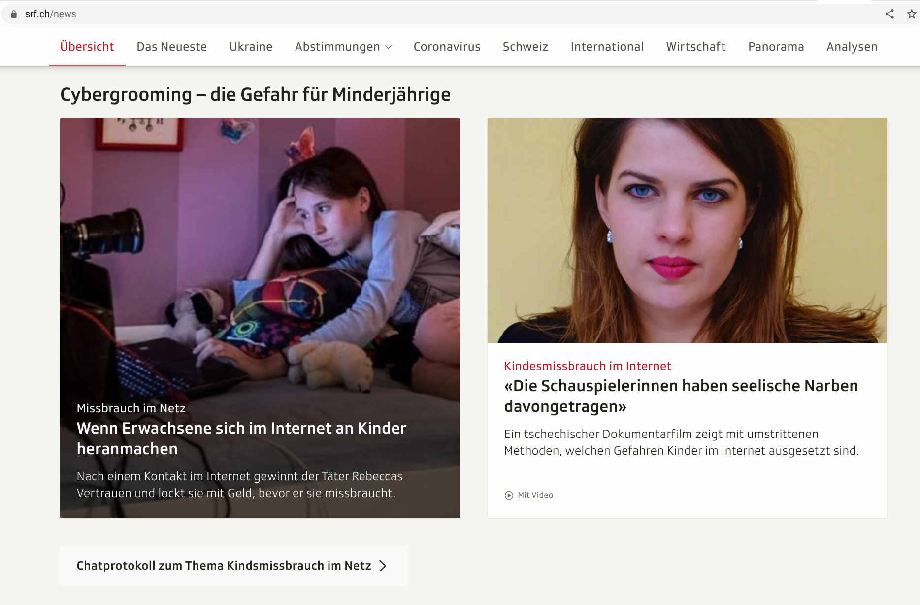 Das Schweizer Fernsehen macht am 10. Mai 2022 einen #SRFclub zum Thema CyberGrooming. Es treten auf: