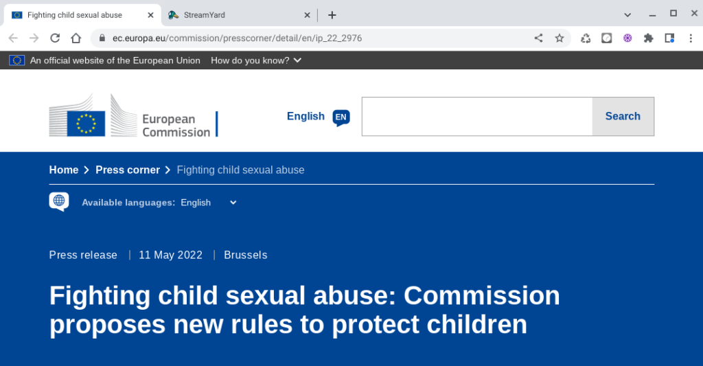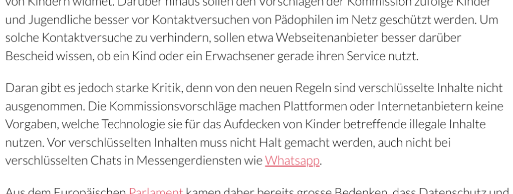Weder gibt es einen Link auf die Kommission. Und auch hier, werden Studien zitiert, aber nicht verlinkt: “Die Kommission beruft sich auf einen Bericht des National Center for Missing & Exploited Children (NCMEC)”. Aber dafür solches: