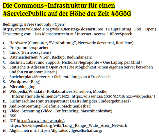 - Der wissenschaftliche Workflow im Wissen schaffen, welcher “Transparenz & Nachvollziehbarkeit” zur Grundbedingung macht, gilt auch für den informationellen ServicePublic. Und auch hier ist das Ziel, dass gerade dadurch Kritik, Kommentar, Gegenrede, Alternative etc. ermöglicht werden soll: #agree2disagree, #how2disagree etc.