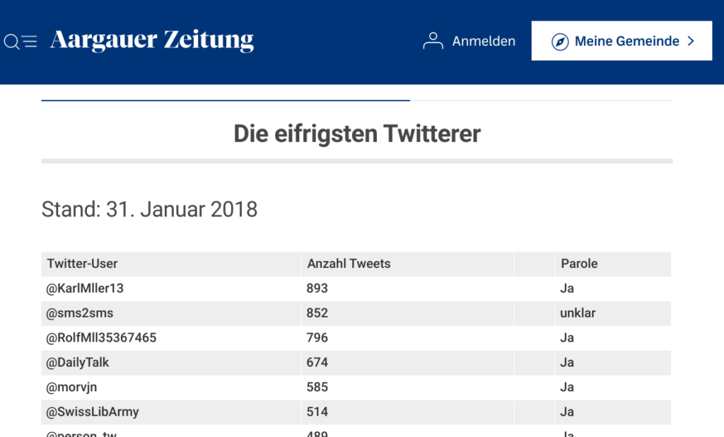 Dennis Bühler, Aargauer Zeitung, heute @republikMagazin und @presseratCH, nutzte eine wissenschaftliche Studie von @politan. Aber die Parole hat er eigenhändig geprüft. Bei m/einem account @sms2sms war ihm klar, dass die Parole unklar sei: danke, @DennisBuehler ;-)