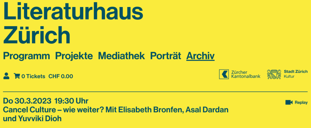 “Affektives Twittern ist keine konstruktive Teilnahme an einem Gespräch.” Elisabeth Bronfen scheint mit Asal Dardan einig zu sein.- in kooperation mit @strauhof ;-) Das sieht der gerne der erste grüne Bundesrat werden will, genau gleich: Stefan M. Seydel, aka sms, aka sms2sms in «Zürcher Festspiel 1901″ (2019, Fotocredit: Charles Schnyder): Twitter, Wikipedia (Lemma), Youtube (aktuell), Soundcloud, Mastodon, Instagram (gesperrt), Snapchat, TikTok, Twitch, t.me/WikiDienstag (Nicht in Betrieb) | Exklusiv: speakerbooking.ch/stefan-m-seydel Stefan M. Seydel/sms ;-) (*1965), … #LitteraturhausZRH | #CancelCulture – wie weiter? @ElisabethBronfen & @asallime wissen es: Affektives Twitter abstellen (so?) | 30. März 2023 weiterlesen