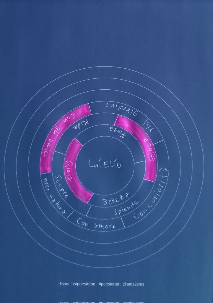 Das Poesierad scheint ein Werkzeug zur Erzeugung von Versen zu sein, indem es eine Vielzahl von Wörtern und Phrasen in einer strukturierten Form anbietet. Jeder Kreis und Sektor enthält bestimmte Elemente, die in verschiedenen Kombinationen verwendet werden können, um Verse zu erstellen.