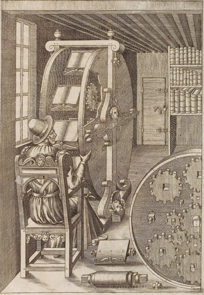 Das Leserad und andere kuriose Kuriositäten, wurden in der Zeit des frühen Internetzs gerne herumgezeigt, um die Idee des “surfens” zu illustrieren. Aber vom “mechanischen Dichten”, hörte ich — so weit ich mich erinnern kann — bis dahin noch nie…