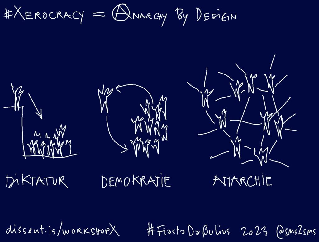 - #Xerocracy: Organisiere dich auf eine Weise, die Hierarchien und Machtstrukturen minimiert oder eliminiert. Fördere Konsens, Dezentralisierung und Selbstorganisation, und schaffe eine Kultur, in der Entscheidungen gemeinsam getroffen werden und jeder Einfluss hat.