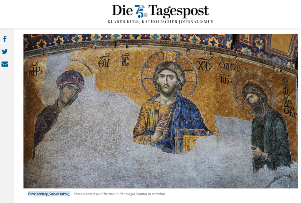 Er hat uns in seiner Predigt die Dorfkirche erklärt. In dem er von einem Besuch in Istanbul erzählte. Ich bin nicht sicher ober dieses Mosaik meinte. Sicher aber ist, dass er von jenen drei Heiligen sprach, deren drei Geburtstage der katholische Ritus feiert: Jesus, Maria, Johannes. Das wusste ich nicht: das Katholische Kirchenjahr feiert nur drei Geburtstage…