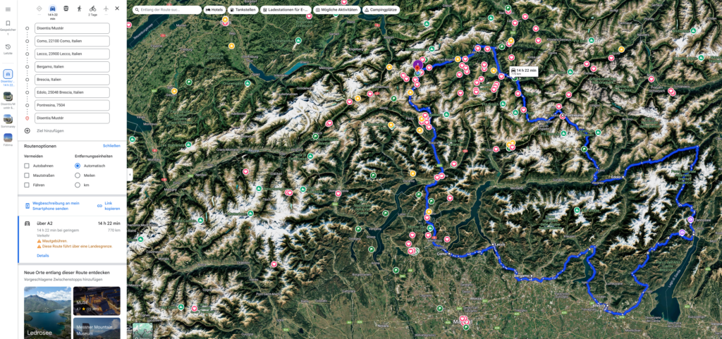 - Anreise (ca. 90 km, etwa 1 Stunde 20 Minuten Fahrt von Lecco)