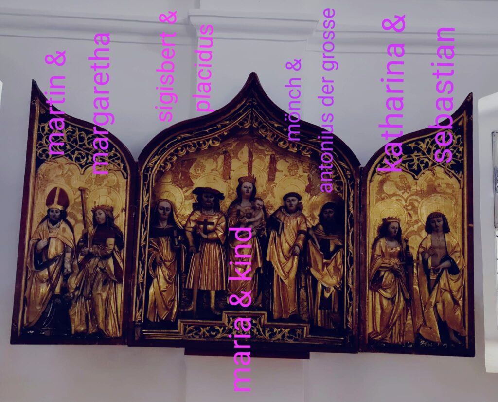 Wie Dr. Kaspar Howald von Graubünden Culture auf unsere Notizen unter dissent.is/SognValentin geschaut hat, nannte er die Arbeit „Lebendige Denkmalpflege“. Würde Denkmalpflege wörtlich genommen, pflegte sie ja die Ermöglichung nachzudenken, zu vergleichen, zu reflektieren. Und das tut sie ja auch, wenn wir den heiligen Martin in der Beziehung zu einem Kapuzinermönch im Flügelaltar von 1515 in neuem Glanz zeigen dürfen: Mehr Kritik geht schwer. Solche Darstellungen sind ermutigend, aktuelle Beziehungen, denen wir ausgesetzt sind, anschaulich zu machen.