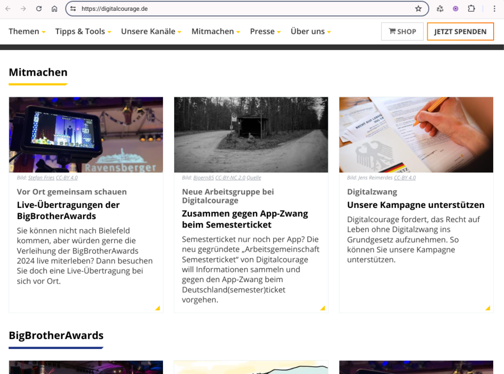 via WhatsApp wurde ich gefragt, was ich als sozialarbeiter von digitalcourage.de halten würde. ich kenne die initiative nicht. will hier aber kurz chronologisch “zeigen”, wie ich mir eine solche seite anschauen…