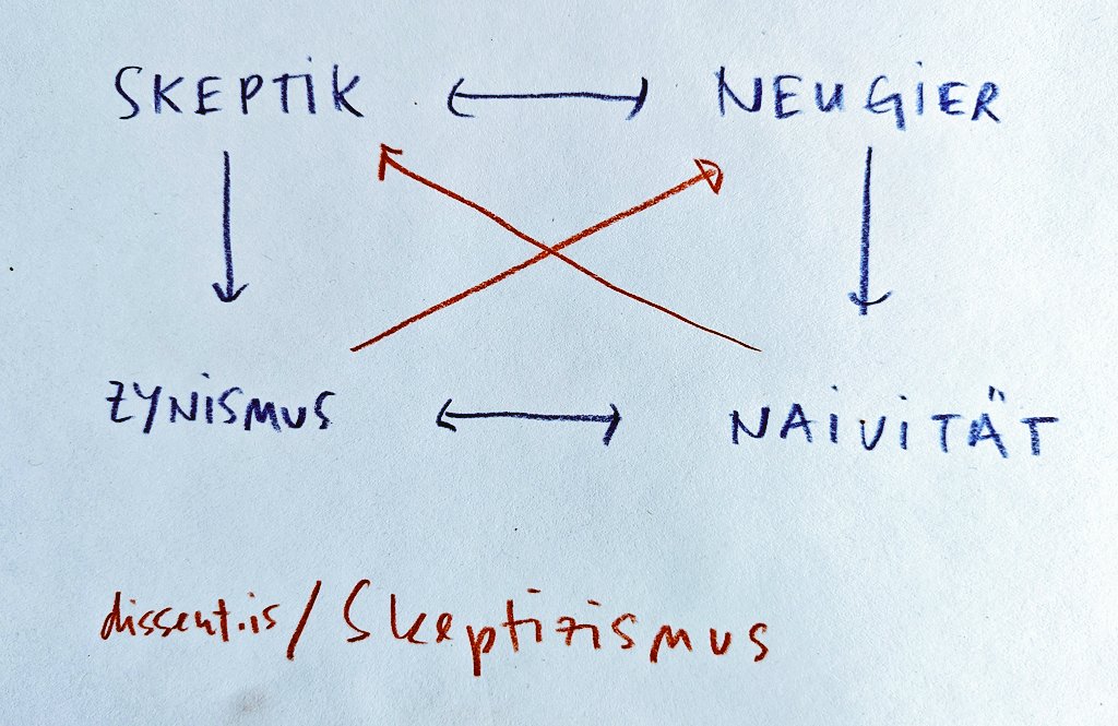 - Skeptizismus → Kritisches Hinterfragen, methodischer Zweifel, Widerstand gegen blinde Autorität.