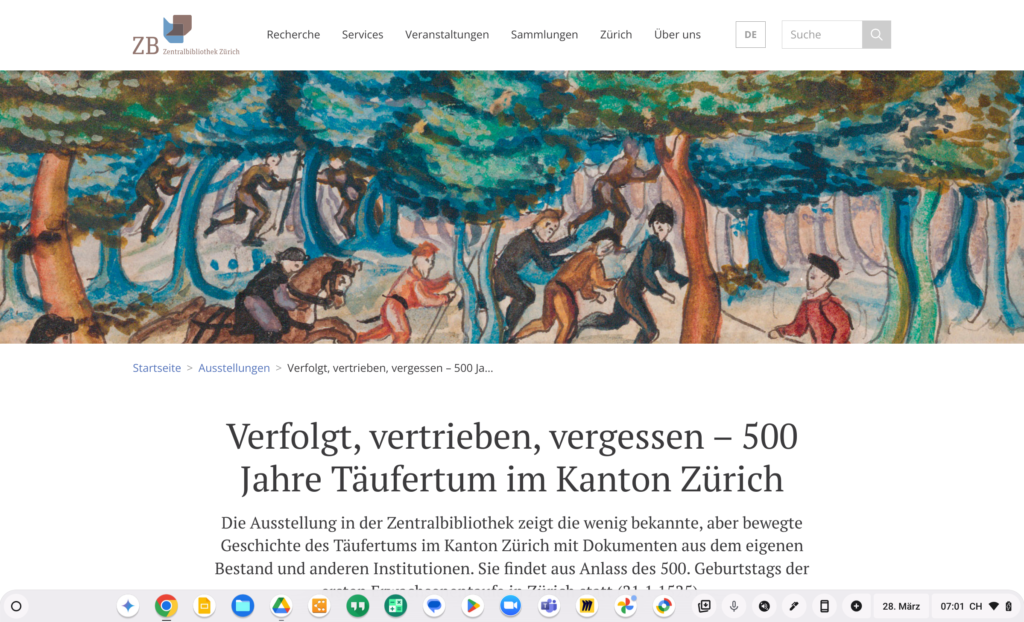 wenn 1527 der erste Täufer von der Stadt Zürich ermordet wurde.