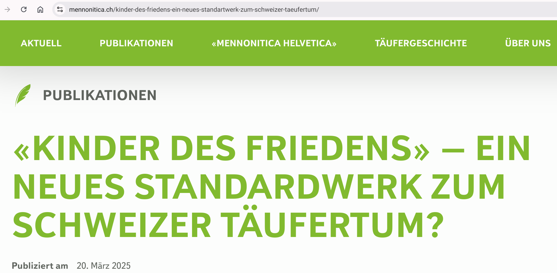 „Kinder des Friedens“ – ein neues Standardwerk zum Schweizer Täufertum?