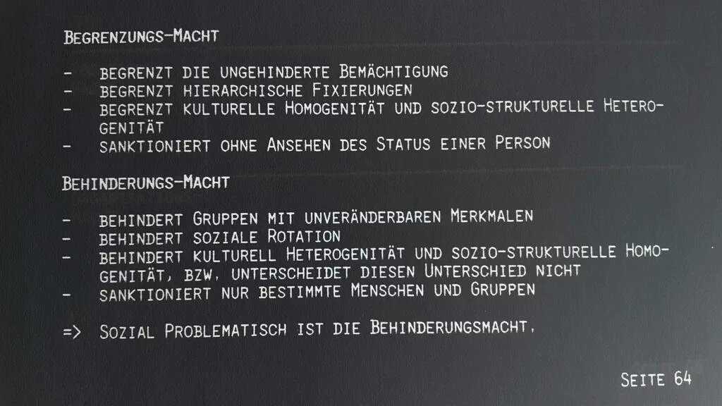- Macht – Ressourcen zur Gestaltung, Behinderung oder Begrenzung sozialer Möglichkeiten.