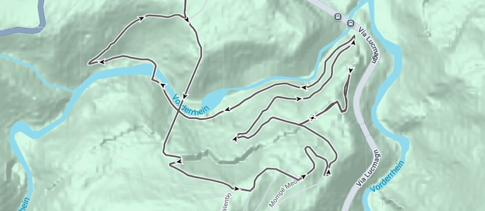 Strecke und Höhenprofil werden noch angepasst werden: Strecke: Kloster — #SognGions — Sontga Gada — #LaPendenta — #SognValentin — #Caschlatsch — Spielplatz Fontanivas — Philosophenweg/Raveras — Kloster