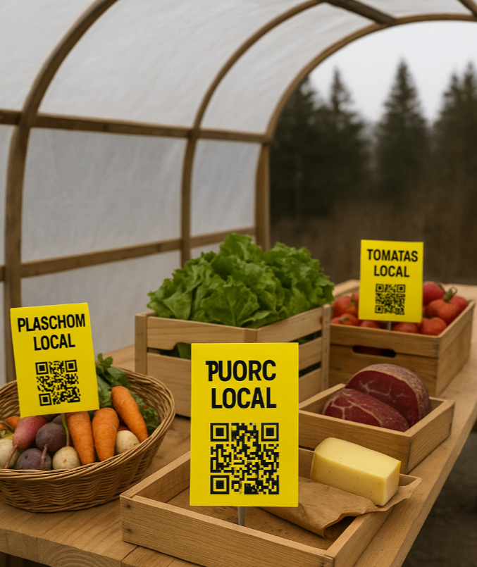 Mit QR-Codes oder Barcode-Scans auf Alltagsprodukten zeigt das Projekt, woher Dinge in der Surselva wirklich kommen. Joghurt, Milch, Fleisch – kaum etwas stammt noch aus dem Tal selbst. Diese kleinen Interventionen wollen stören, sensibilisieren – und die Lust auf echte Autarkie entfachen.