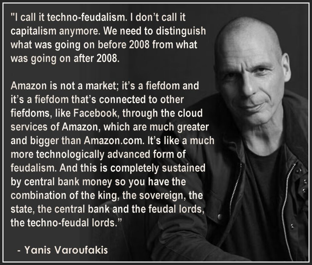 - Yanis Varoufakis – Technofeudalism (2023): Das Kapital hat den Kapitalismus ersetzt – von Märkten zu Plattformen.
