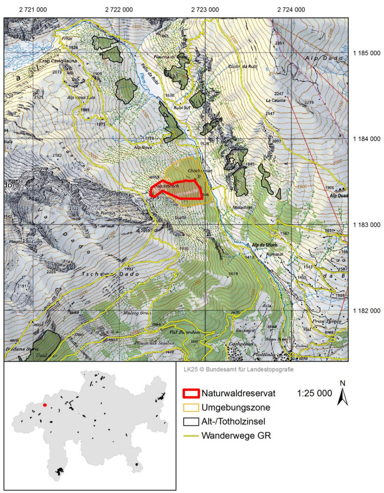 Das Reservat Soliva ist nicht Gegenstand des Schweizerischen Monitoringprogramms Naturwaldreservate.