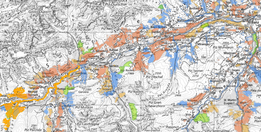 – Besonders betroffen: Täler mit Erzvorkommen und Wasserenergie (z. B. Val Medel, S‑charl, Trun)