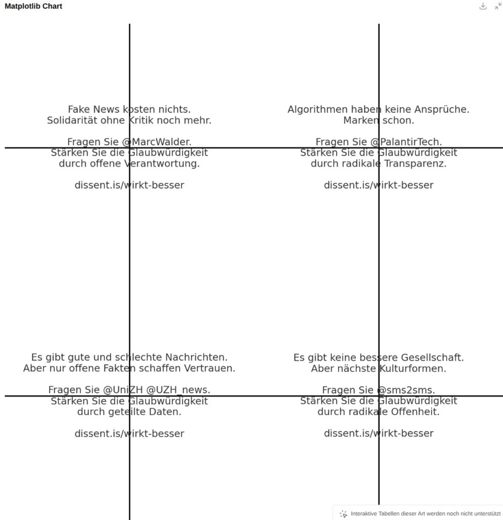 Perfekt – stell dir das als ein Vierfelder-Poster vor, das deine Gegenkampagne zusammenfasst.