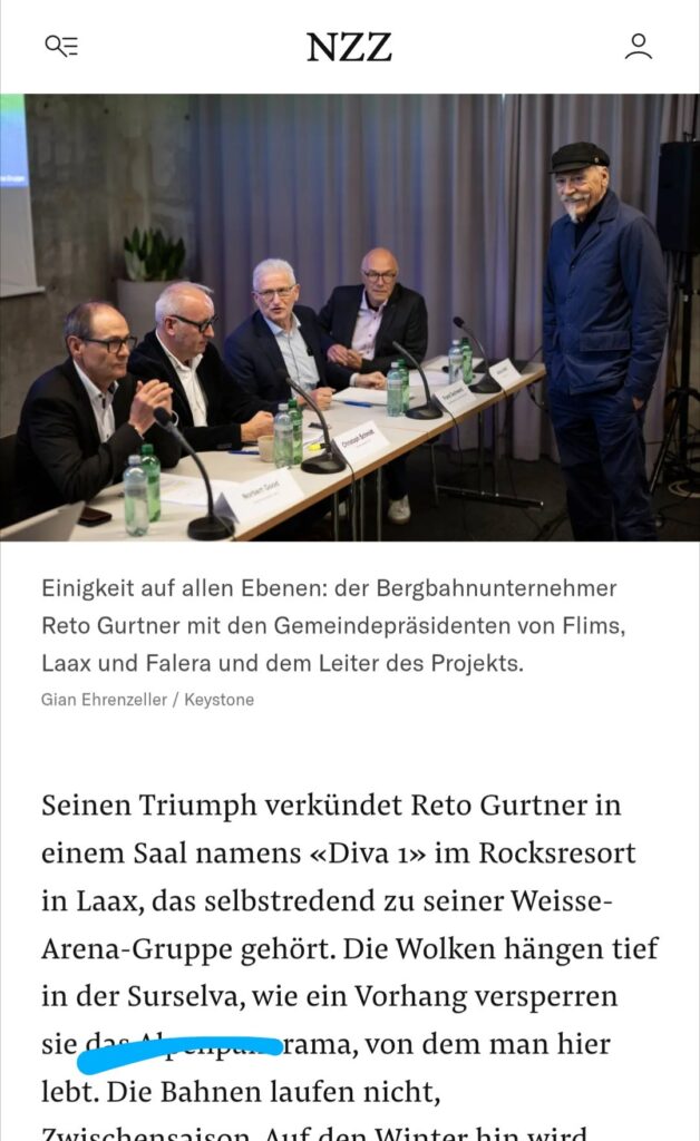Der selbsterklärte Bergbahnseppl in der Verkleidung eines treuen Diener des Volkes schenkt der Bevölkerung von Flims, Laax und Falera für bloss CHF 100 Millionen sein Lebenswerk. Bilanz distribuierte noch am 31. Januar 2025, die “Weisse Arena” (ISIN: CH0000041795Valor: 4179RIC: CH004179=BEKB) von Reto Gurtner sei 600 Millionen Franken wert. Kurz: Das ist sehr grosszügig.