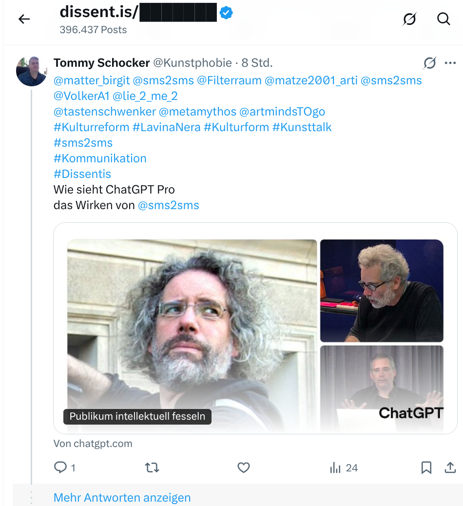 Da hat der Tommy Schocker mit seiner @Kunstphobie eine Anfrage gemacht bei #chatGPT, welche ich nie so machen würde… Abernu.