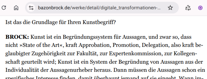 Kunst ist ein Begründungssystem für Aussagen ohne Rückgriff auf externe Autoritäten.