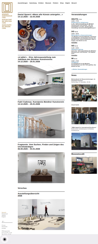 | 2016 | Erweiterungsbau Bündner Kunstmuseum | Spätmoderne Ausstellungsarchitektur |