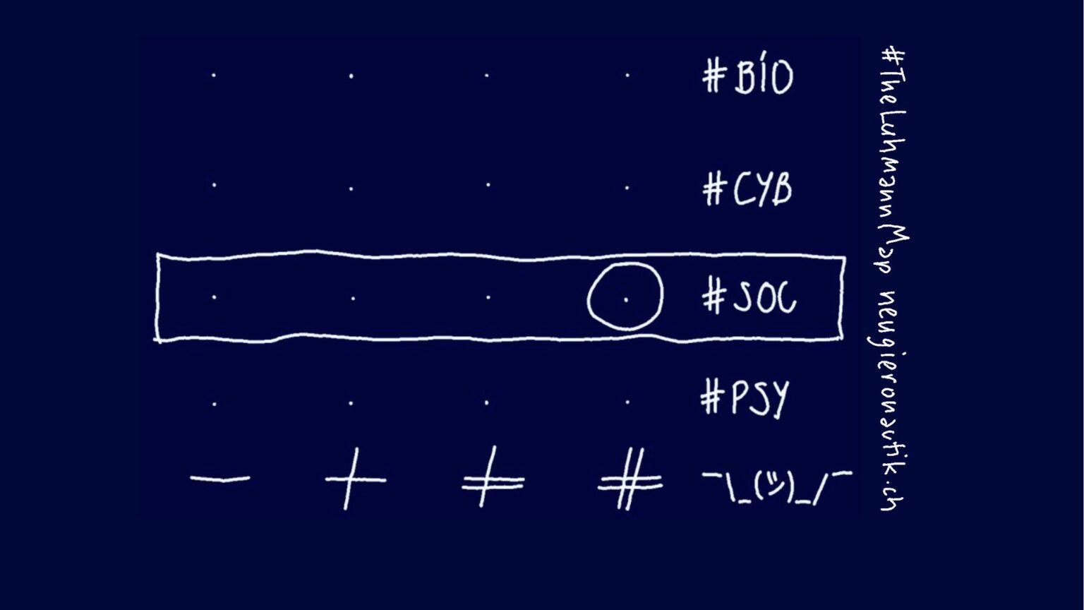 Der Soziologe Niklas Luhmann fokussiert auf #SOC. Der Sozialarbeiter, der Arbeit am Sozialen auch. Dieser Arbeitet nicht an Körpern, nicht an Psychen, nicht an “Sachen”, “Dingen”, “Maschinen” oder “Computern”.