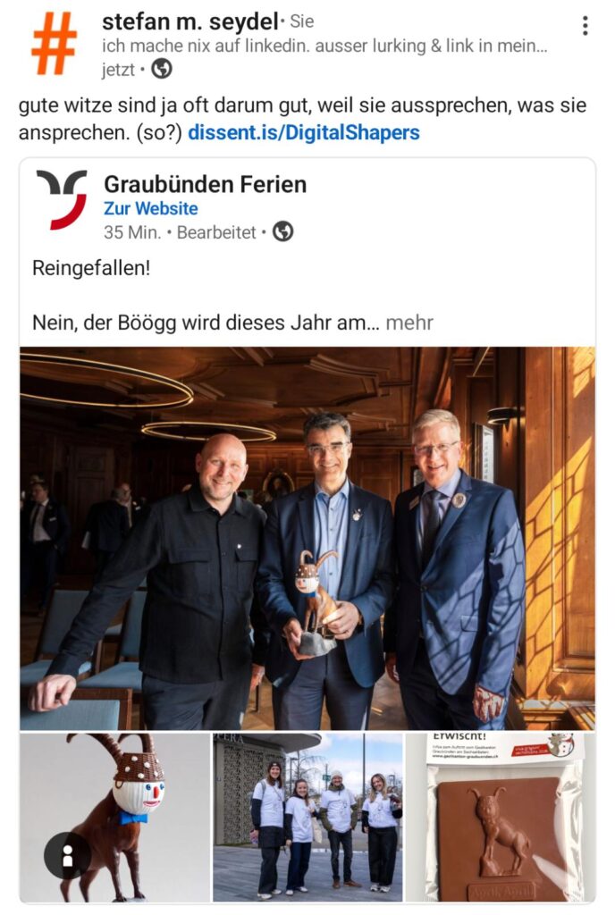 Herzliche Gratulation an Marcel Meyer, @Graubünden Digital, Der Bock als Gärtner des Digitalen Kategorie: The Frameworkers: Sie setzen die Leitplanken der Digitalisierung in Politik, Verwaltung und Verbänden. | M/ein Blog ist m/ein Kartenraum und k/eine Bühne. Ich weiss wie man publiziert. Das hier ist etwas anderes. d!a!n!k!e | WORK IN PROGRESS reload für aktuellen schreibstand | warum ich nicht publiziere? weil ich es kann. weil es geht. weil ich es für angemessen halte.