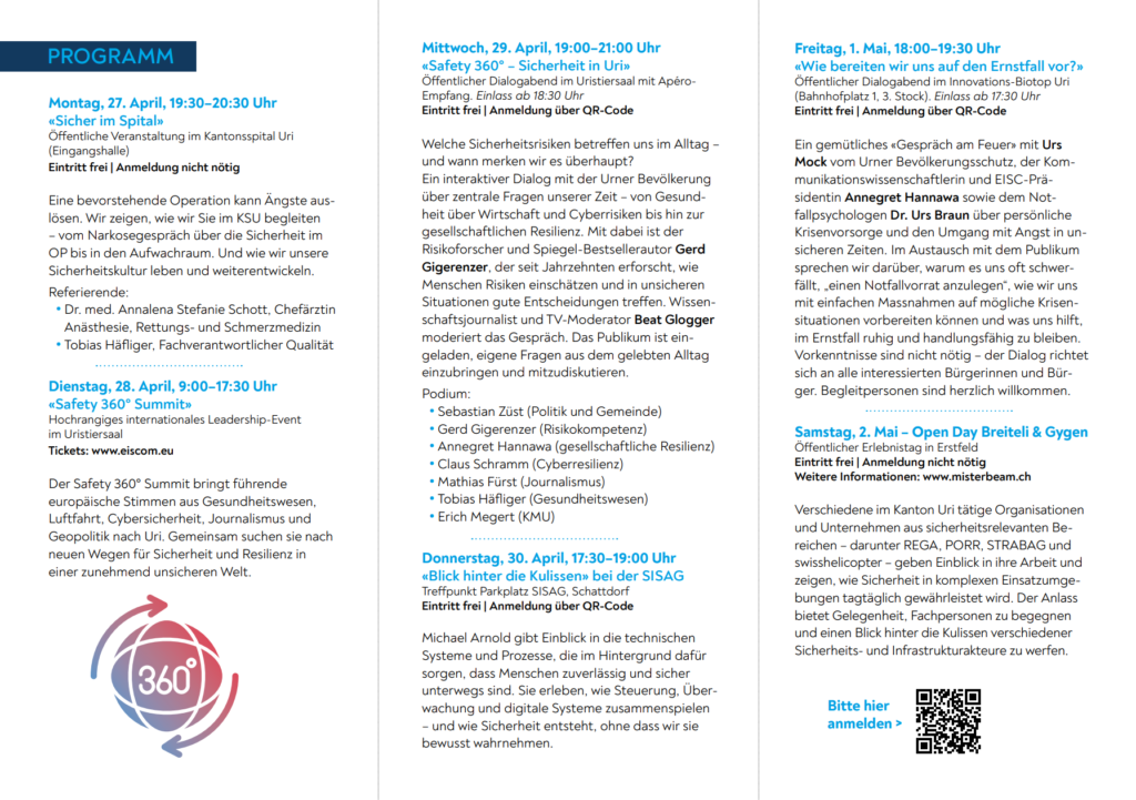 Quelle: Veranstaltungsplakat (EISCOM „Safety 360° – Sicherheit in Uri“, 29.04.2026).