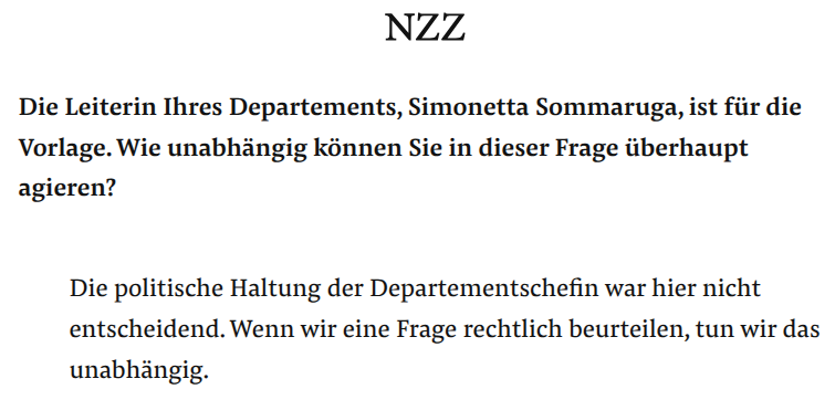 Das Interview der NZZ, was den späteren Bundesrat Albert Rösti so nervte (Curia Vista 18.5590), endete mit diesem Satz von Martin Dumermuth: