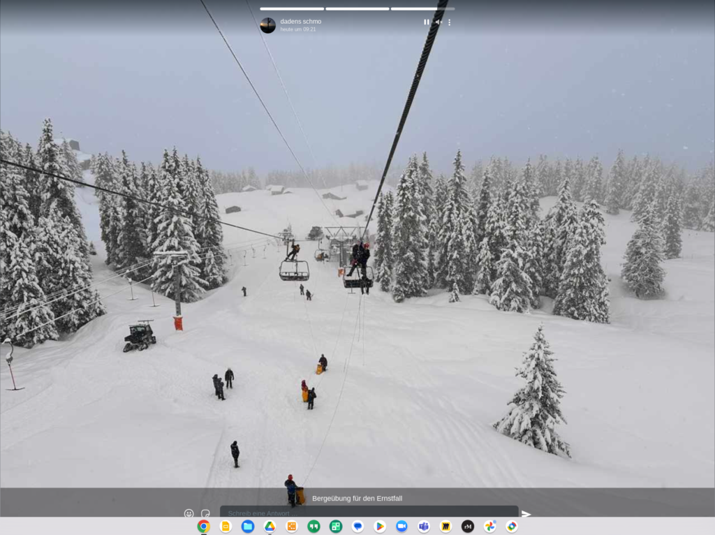 Am 23. Januar 2021 hat die Schneemenge es zugelassen, dass der Lift #Dadens bis zur Bergstation geführt werden konnte. Und es war mein Arbeitstag. Mit anderen Worten: ich durfte den Arbeitsplatz in der Nachmittagsschicht — ca. von 11.30 — 16h — weiter einrichten.