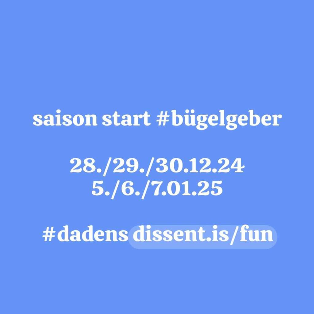 Zum dritten Mal werde ich an 1 bis 2 Tagen pro Woche am Skilift Dadens stehen und Bügel geben… Auch dieses Jahr wieder: Mich Gerber am Morgen — MinimalTechno am Nachmittag — solange der Akku hält (und ich oben am Berg stehe ;-) Mehr Bilder auf Twitter: @sms2sms #bügelgeber und manchmal auf: instagram.com/buegelgeber ;-)