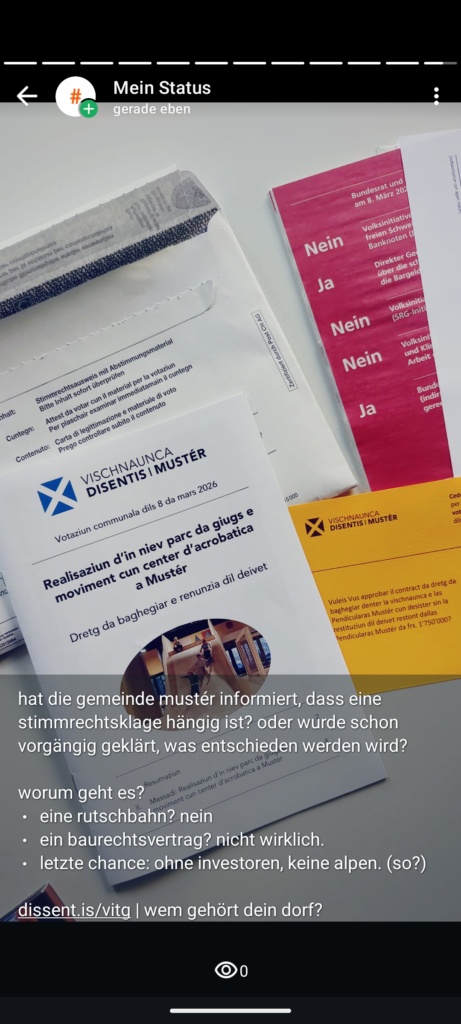 wenn in chur dem kanton graubünden erzählt wird, worüber im dissent.is/vitg abgestimmt worden ist, dann ist am tag danach klar, um welchen deal es tatsächlich ging. (so?)