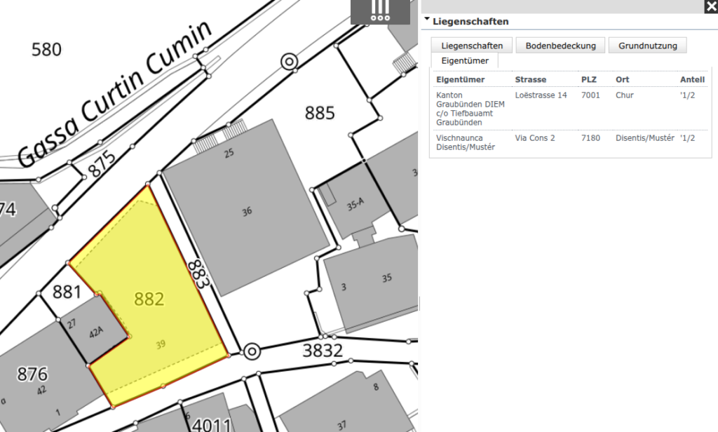 La lingia rosa stritgada a Mustér | Die rosa gestrichelte Linie ist noch nicht definitiv gesetzlich fixiert. Sie bestimmt, wo im Erdgeschoss Gewerberäume anzubieten sind…